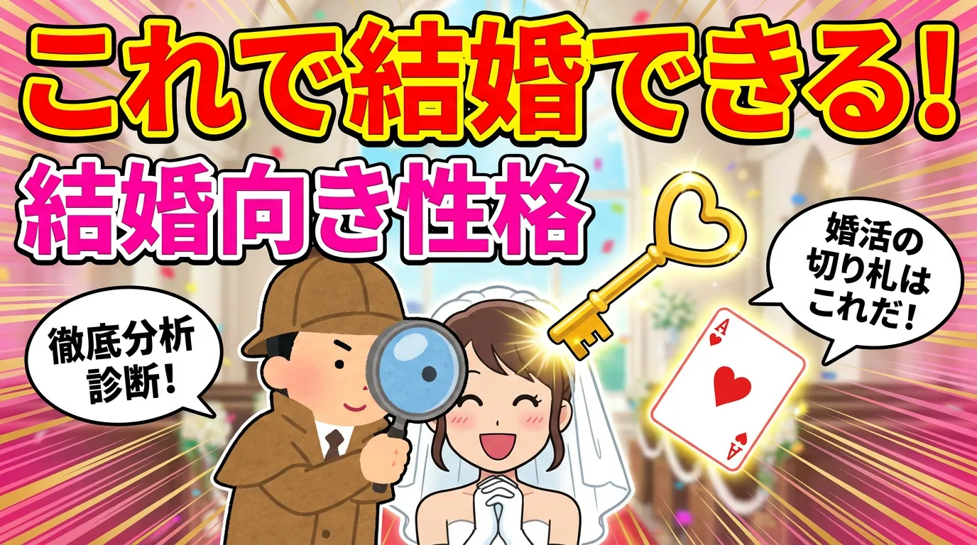あなたの隠れた結婚向きな性格を徹底分析!この診断で、婚活の成功確率をグッと上げる「切り札」を見つけましょう。新しい自分を発見するチャンスです!さあ、スタート!