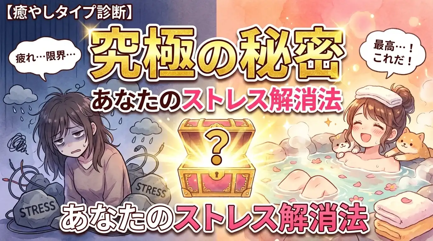 毎日頑張るあなたへ。心と体を本当に癒やす方法、知りたくないですか?この診断で、あなたに最適なストレス解消法を見つけて、心穏やかな日々を手に入れましょう!
