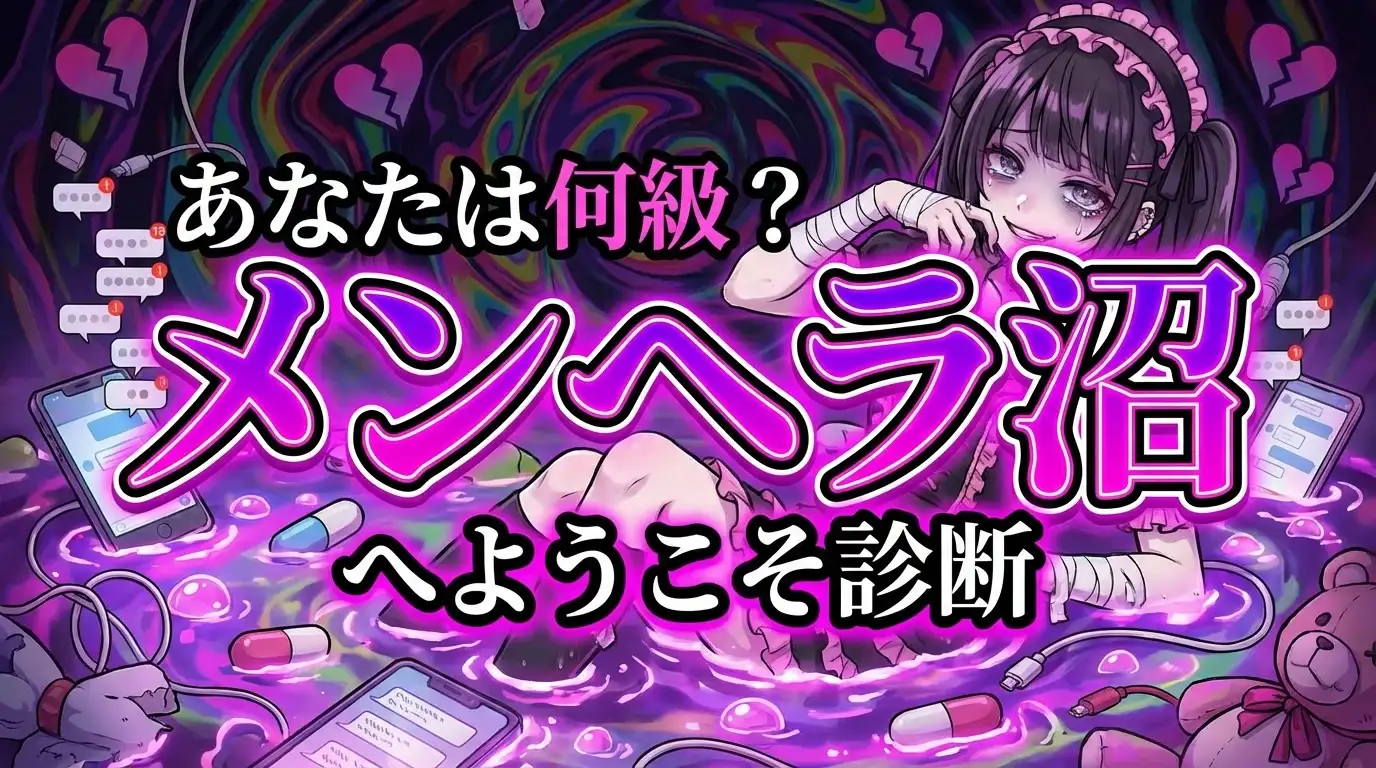 あなたの心の奥底に潜む「メンヘラ度」を診断します。全20問の質問に答えて、あなたはメンヘラ沼のどのレベルにいるかチェックしてみましょう。意外な自分が見つかるかも?