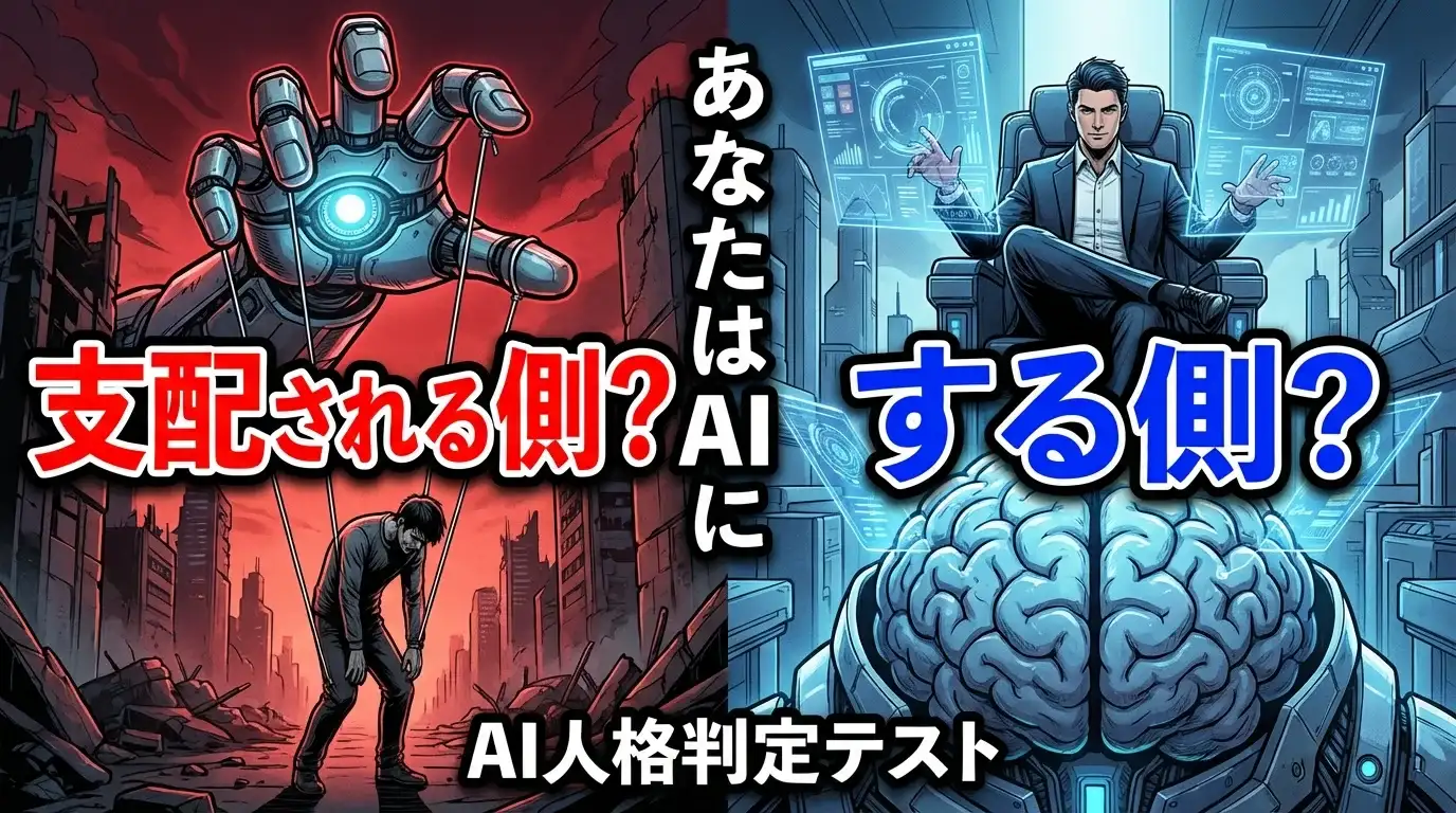 未来の世界でAIとの関わり方はどうなる?あなたの隠れたAI親和性を診断します。あなたはAIを使いこなすリーダーか、それともAIの恩恵を享受する側か。あなたのAI人格を今すぐチェック!