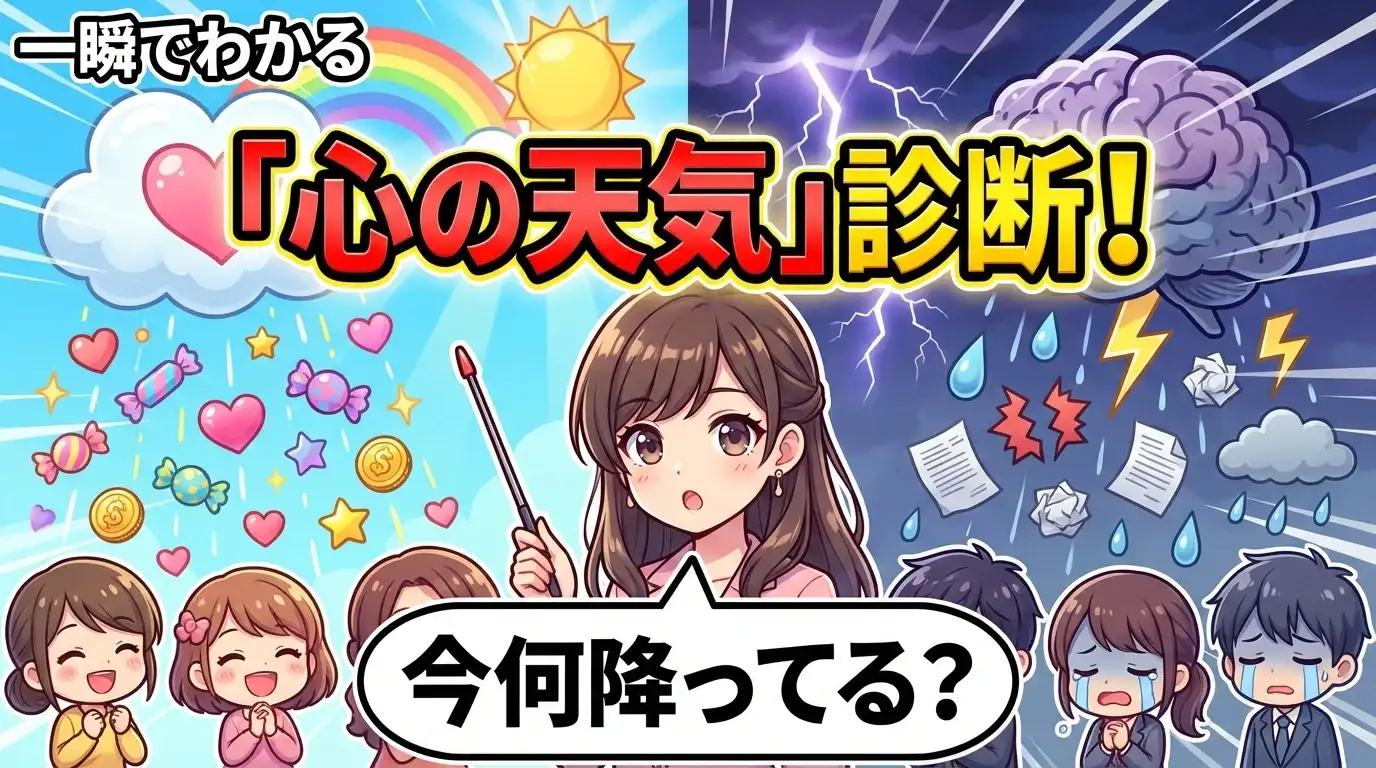 あなたの心の状態を「天気」に例えて診断します。今の心の動きや、隠れた感情まで、サッと見通してみませんか?意外な発見があるかも。