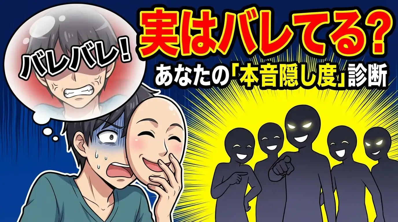 本音と建前、上手に使い分けていますか?知らず知らずのうちに、あなたの本音は周りに伝わっているかもしれません。この診断で、あなたの「本音隠し度」をこっそりチェックしてみましょう。意外な結果が見つかるかも!