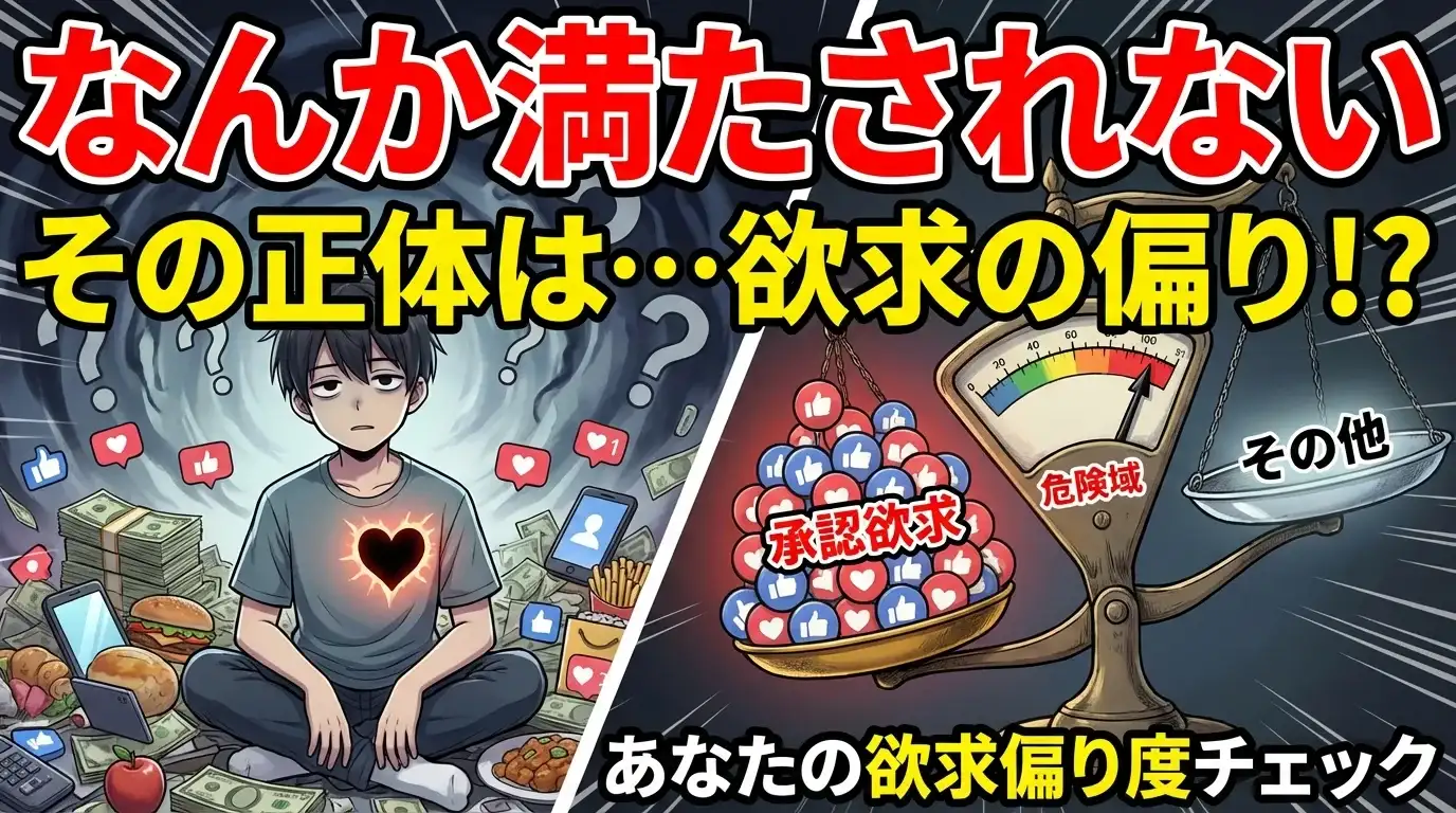 漠然とした「満たされない」気持ち、その原因は欲求の偏りかもしれません。20の質問で、あなたの心の栄養バランスをチェックし、本当に満たすべきものを探しましょう。