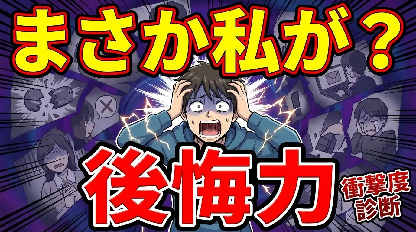 「あの時こうしていれば…」心の中で繰り返される後悔のループ。あなたの心に潜む『後悔力』は、どれほどの衝撃度を秘めているのでしょうか?過去の選択から未来への影響まで、あなたの後悔タイプを徹底診断。さあ、真実を知る覚悟はできていますか?