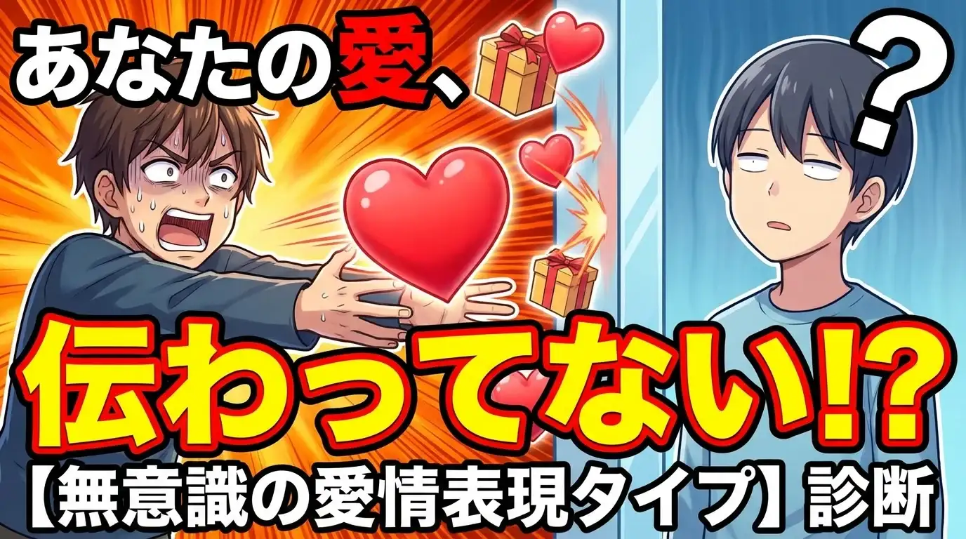 あなたの愛情、ちゃんと相手に伝わっていますか?この診断では、あなたが普段意識していない「無意識の愛情表現」を深掘り。あなたの秘めた愛の伝え方が明らかになります。もしかしたら、その愛、伝わり方を少し変えるだけで、もっと輝くかも?