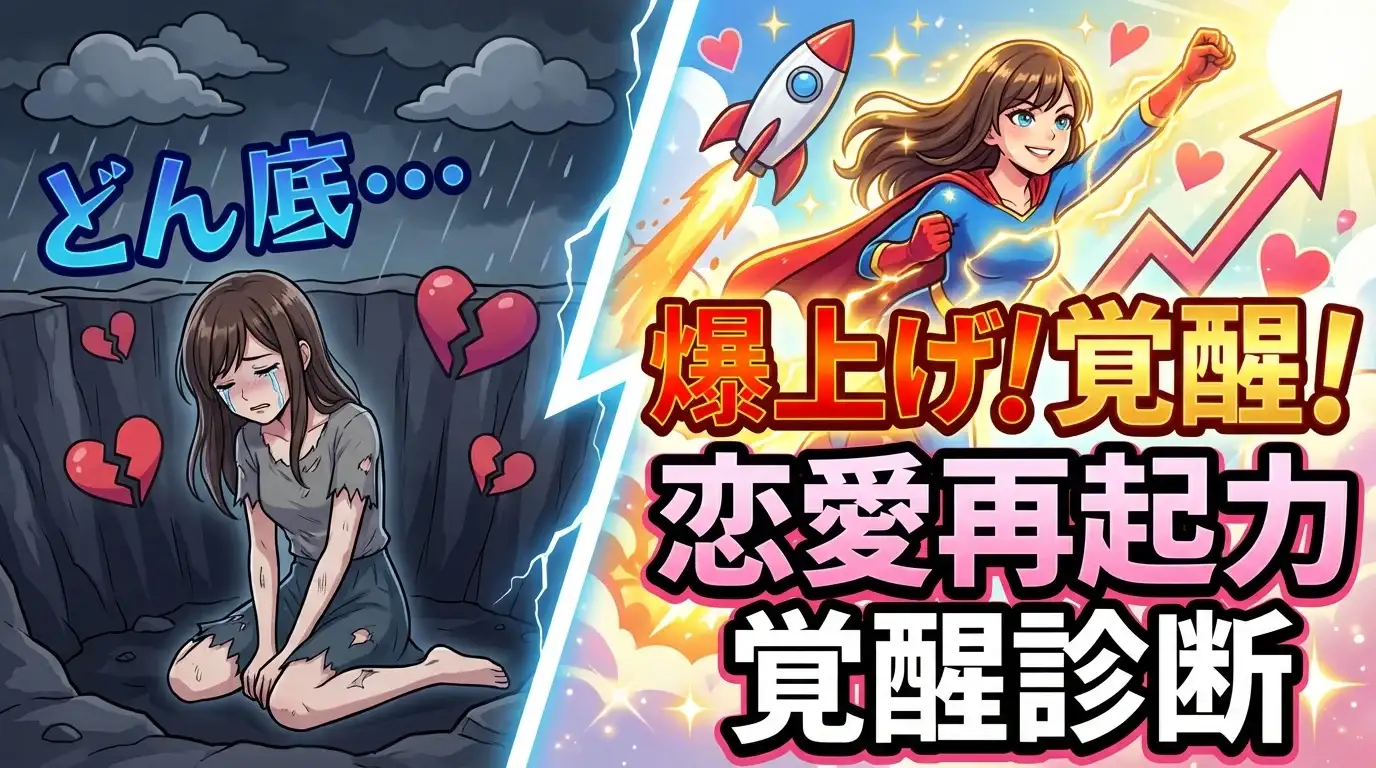 過去の恋愛で傷ついたあなたへ。その経験は、未来の幸せへの伏線です。秘められた再起力を診断し、最高の恋愛へと覚醒させましょう!