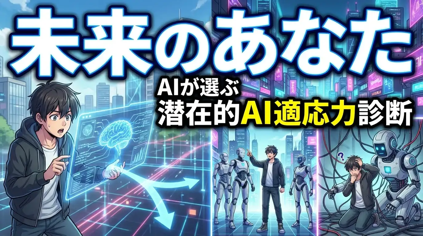 AIが選ぶ未来のあなたは、どんな世界で活躍しているでしょう?この診断で、あなたの潜在的なAI適応力を測り、来るべき未来での役割を探ります。