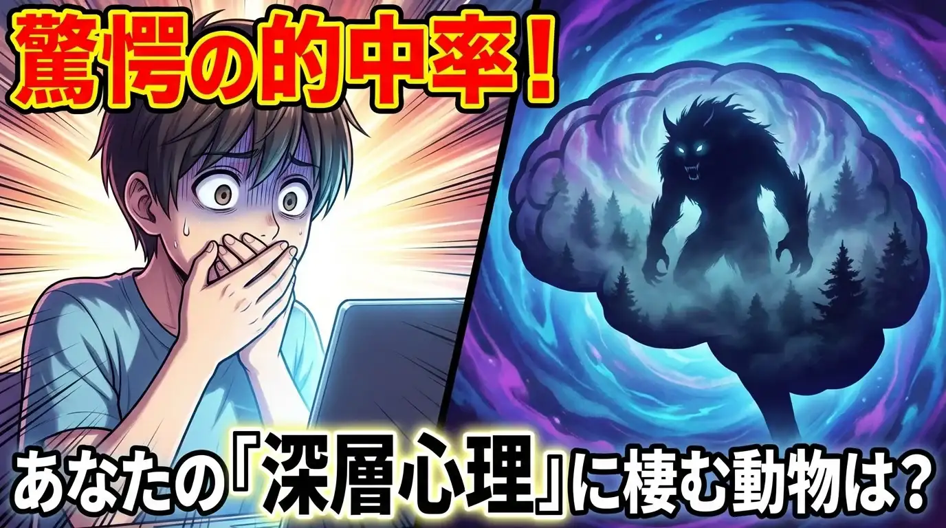 あなたの無意識下に隠された本当の性格や行動パターンを、神秘的な動物に例えて診断します。驚くほど当たる深層心理の扉を開いてみませんか?