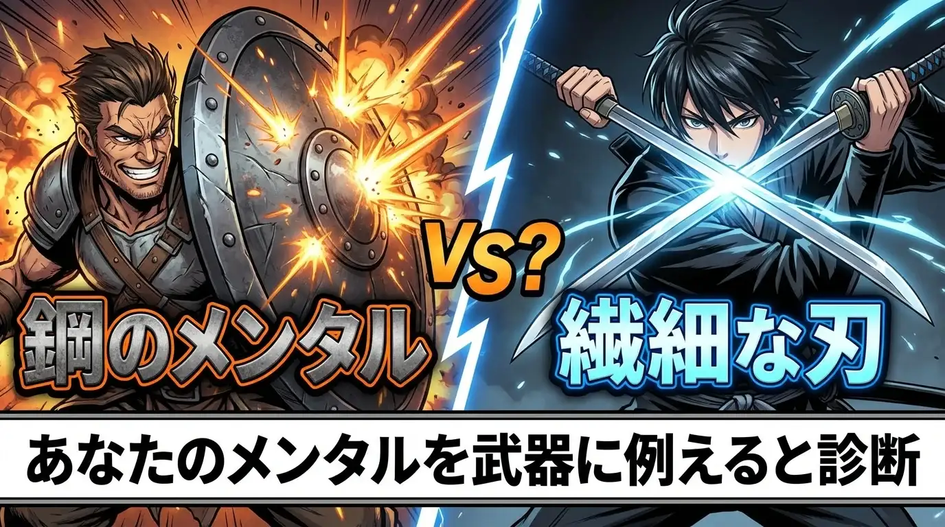 あなたの心の強さとしなやかさを、様々な武器になぞらえて診断します。秘められた本当のメンタルタイプを発見しましょう!
