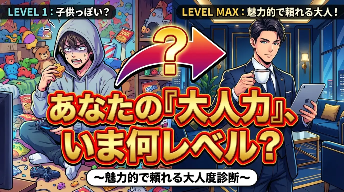 周りから一目置かれる『大人』ってどんな人だろう?この診断であなたの隠れた大人力を発見!思わず頷く結果に、明日からの行動が変わるかも!さあ、あなたの魅力を測ってみよう!