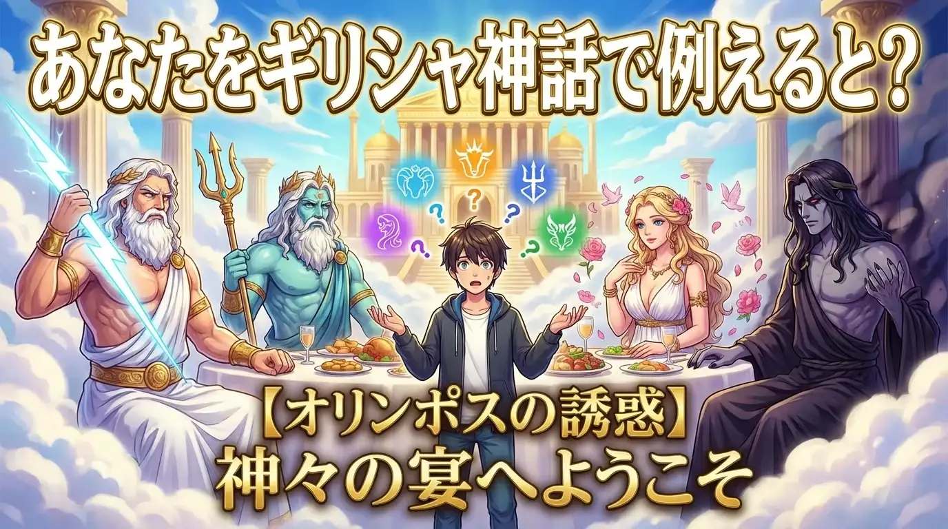 古の神話世界へようこそ!あなたの隠された神性を見つけ出す診断です。さあ、神々の宴で輝くのは誰でしょう?