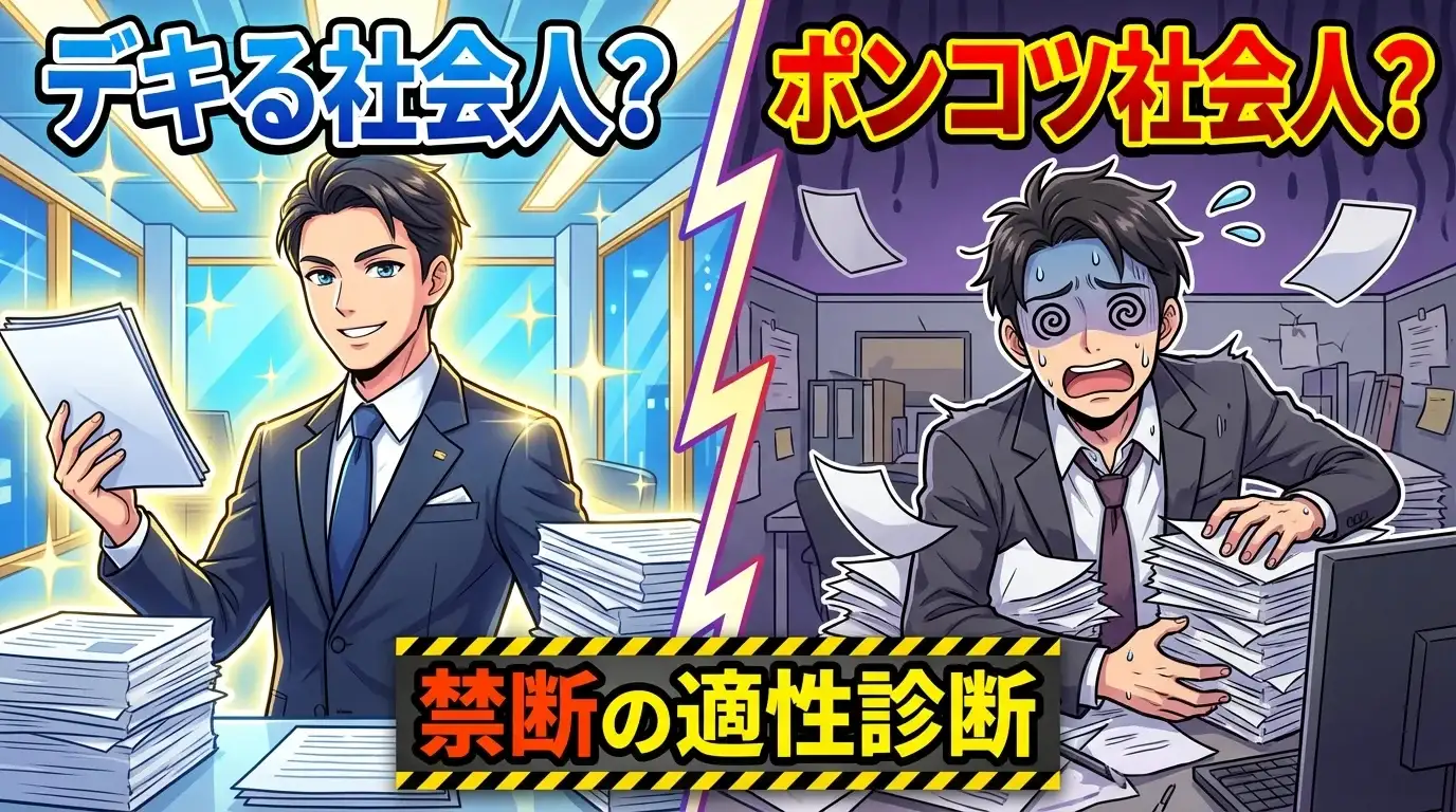 あなたの隠れた社会人レベルを暴く禁断の診断!デキるビジネスパーソンか、それとも愛されポンコツか?全20問で真実が明らかに。
