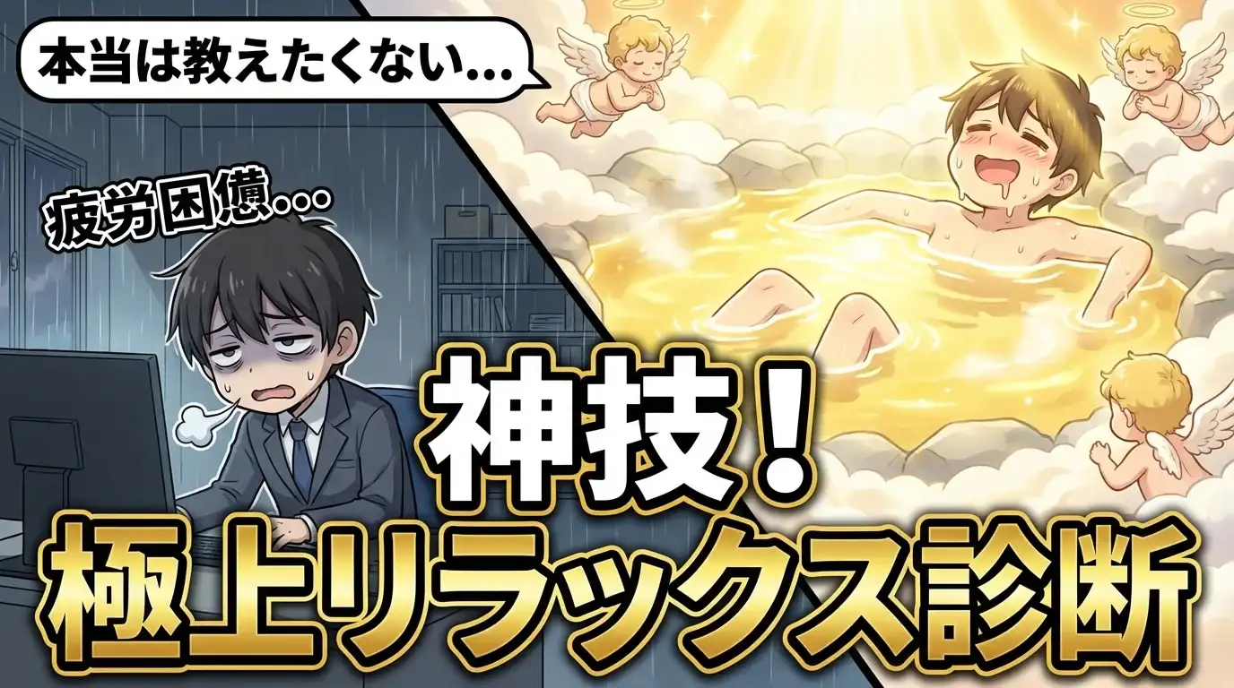 毎日頑張るあなたへ。ココロとカラダが本当に求める究極のリラックス法、見つけたくないですか?全20問で、あなただけの「疲労回復の神技」が明らかに!さあ、至福の扉を開きましょう!