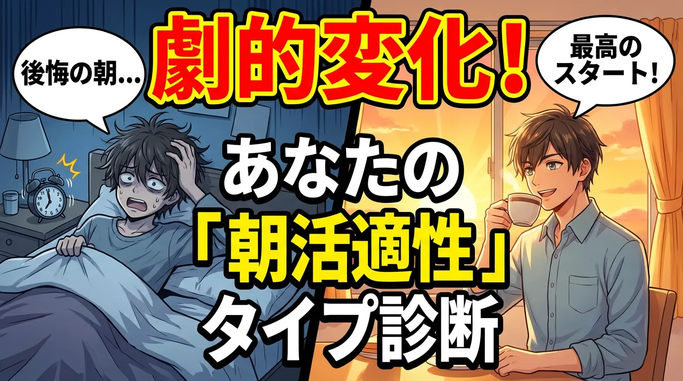あなたの朝の習慣から、秘められた朝活適性が明らかに。これを知れば、毎日がもっと充実する一歩を踏み出せるでしょう。さあ、最高の朝を見つけに行きましょう!