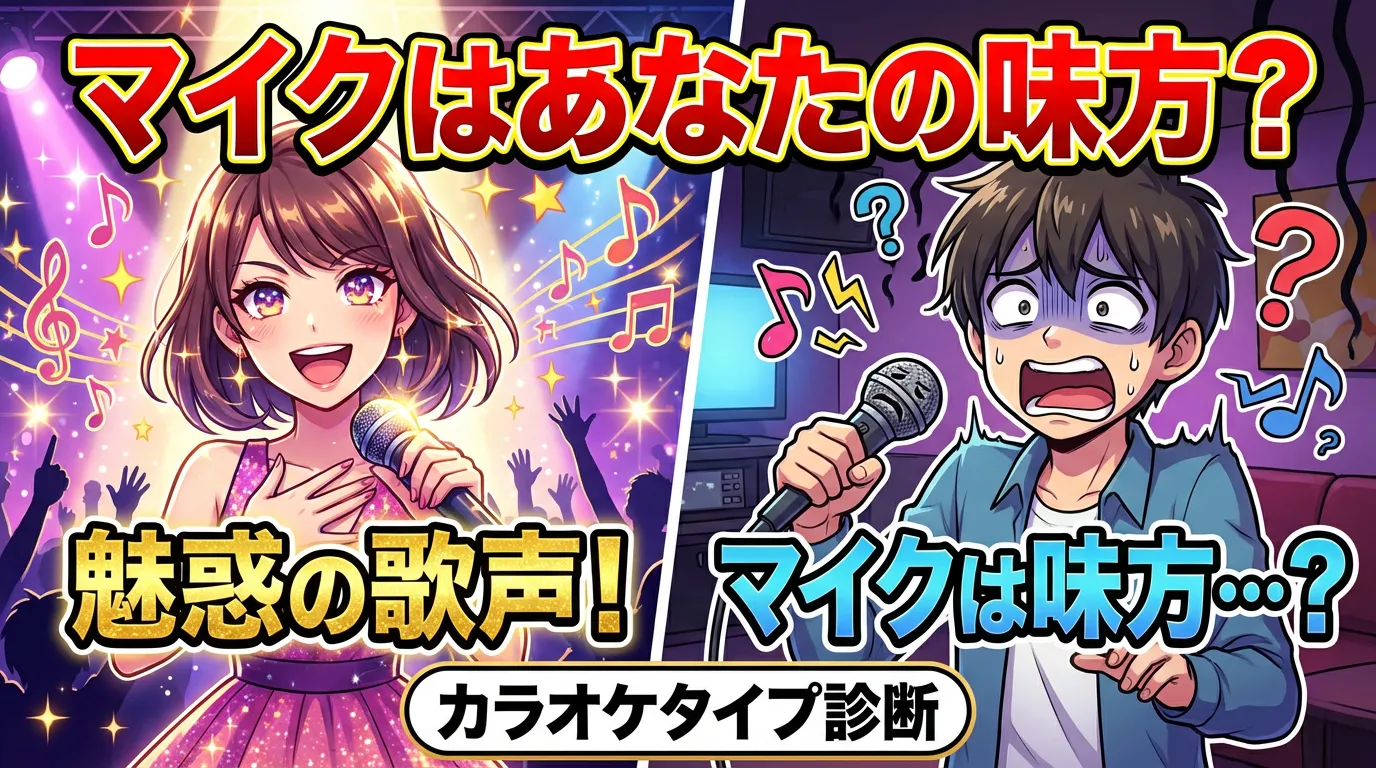 あなたのカラオケでの立ち位置、声の魅力、そして秘められた才能を診断します。さあ、採点マイクを握って、真の歌声を解放しましょう!