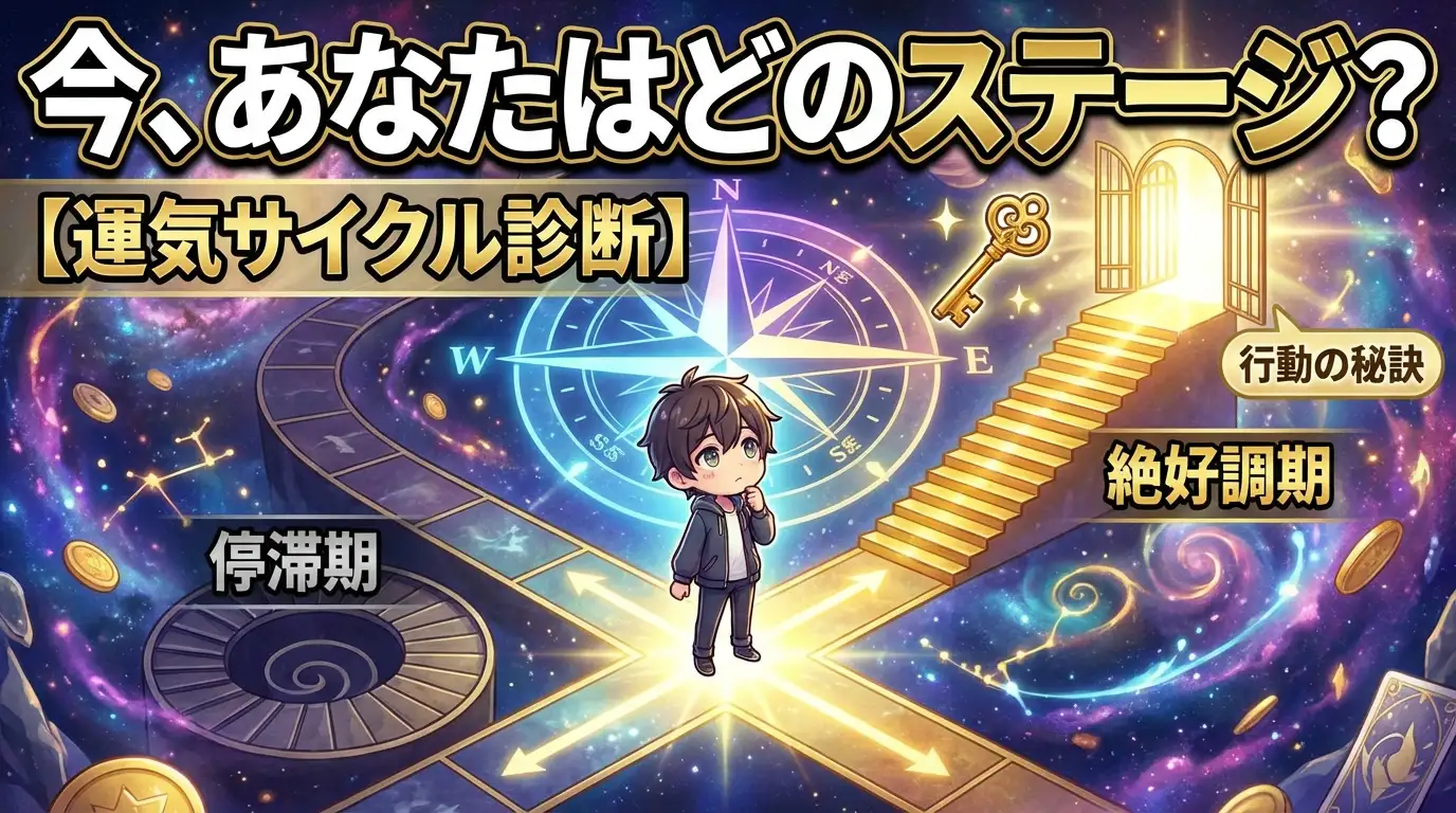 あなたの今の運気の波を知り、好転期を最大限に活かす秘訣を発見しましょう。今のあなたの行動パターンから、運気ステージを診断。
