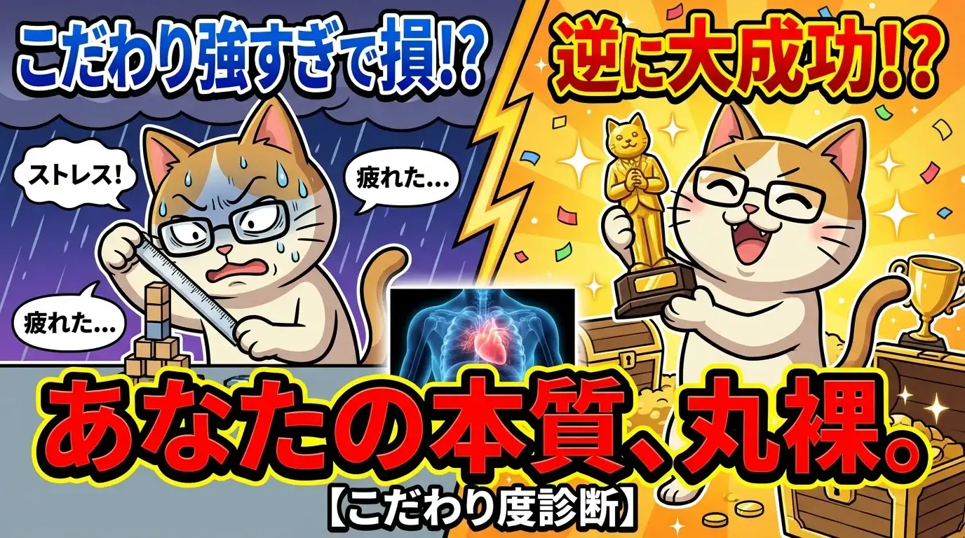 あなたの「こだわり」は、人生を豊かにする武器?それとも足かせ?20の質問で、隠されたこだわり度を徹底診断!あなたの本質を見つけ出す旅に出ましょう。
