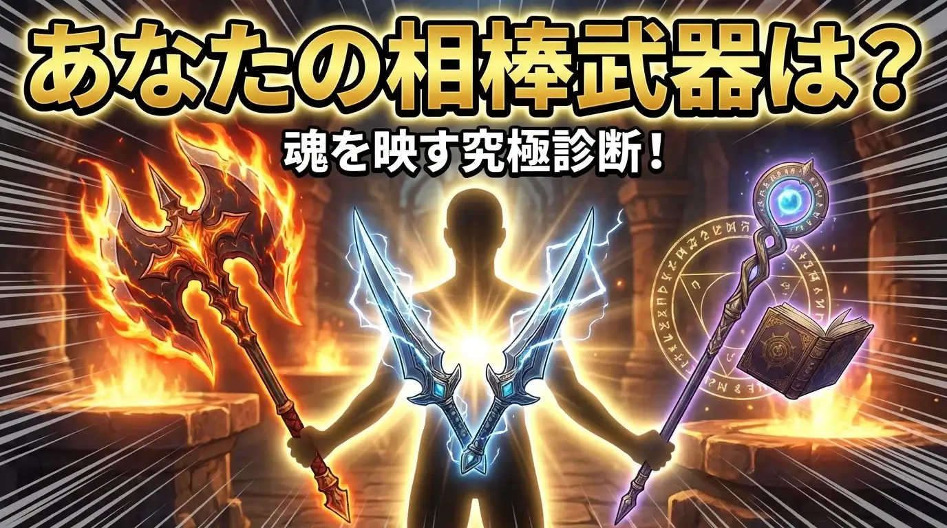 あなたの性格や行動パターンから、心に秘めた真の力が明らかに!一体どんな武器があなたの相棒となるのでしょう?さあ、冒険の扉を開きましょう!